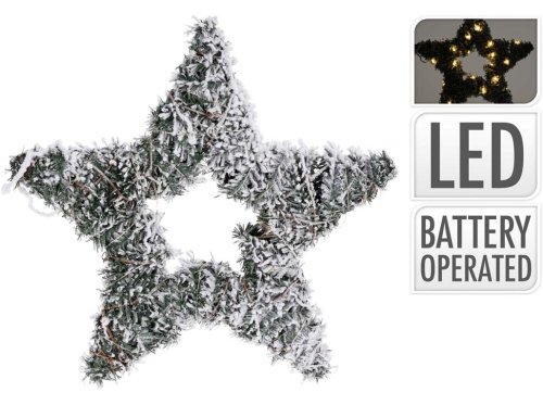 Zasněžená hvězda s led diodami s teplým žlutým světlem umocní vánoční atmosféru a zútulní Váš domov. Hvězda je vyrobena z úmělého jehličí, protkaná úmělým ratanem, zasněžená a omotaná tenkými led světýlky. Velikost hvězdy je 40cm.