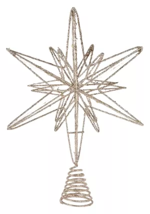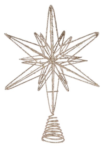 Elegantní LED špička ve tvaru hvězdy zaujme už na první pohled. Díky výšce 33 cm a jemnému osvětlení 20 LED diod v odstínu champagne/zlatá skvěle doplní každý vánoční stromek.Světelná dekorace je ideální volbou pro slavnostní doladění vánoční výzdoby. V šeru a tmě vytváří útulnou atmosféru a dodává prostoru vánoční kouzlo.