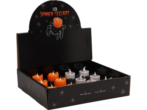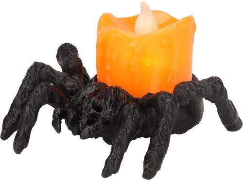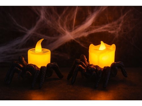 Vtipná LED dekorace ve tvaru pavouka, který drží imitaci čajové svíčky. Blikající světlo vytvoří zábavný efekt na halloweenský večer. Pro děti i dospělé – bezpečná alternativa skutečných svíček.