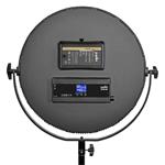 Na zadní straně světla je umístěn přehledný informační displej, který informuje o nastavených hodnotách. Displej tak zobrazí aktuální hodnotu jasu, barevné teploty, skupiny a čísla kanálu ovládání i stav baterie. Pomocí fyzických tlačítek a kruhového voliče přímo na displeji lze všechny tyto hodnoty jednoduše ovládat přímo na zadní straně světla, takže budete mít pod palcem osvětlení snímaného objektu.