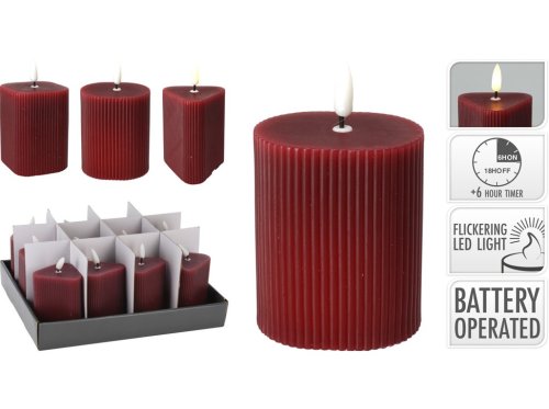 Tato sada tří LED svíček o rozměrech 60 × 115, 65 × 115 a 70 × 115 mm s časovačem je ideální pro stolní dekorace a vánoční aranžmá. Červená barva dodává interiéru slavnostní a útulný vzhled. LED osvětlení poskytuje bezpečné a jemné světlo bez otevřeného plamene. Svíčky lze používat samostatně nebo jako dekorativní set, který zútulní každý prostor. Zboží je dodáváno v mixu. Doručované zboží je vybíráno náhodně a nelze vybrat konkrétní provedení.