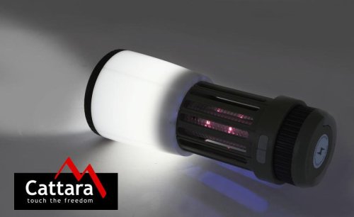SMD LED vám zajistí běžné osvětlení se světelným tokem 100 lm. Na přední straně se navíc nachází ovládání. Vyberete si, zda chcete použít lapač nebo svítilnu a zmáčknete příslušné tlačítko. Svítilnu postavíte na stůl nebo zavěsíte za výklopný háček.