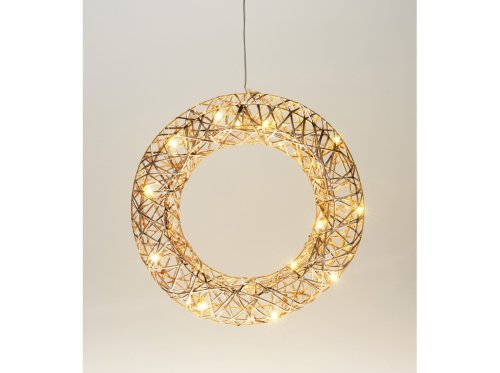 LED věnec vánoční kov 300x70x300mm závěsný s časovačem, zlatá