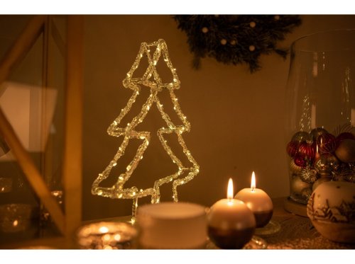 Tento LED stromek o rozměru 290 × 345 mm je dekorativní prvek vhodný pro zavěšení na okno, stěnu nebo strop. LED světlo s časovačem umožňuje pohodlné ovládání a vytváří jemné a hřejivé osvětlení. Čirý křišťálový vzhled dodává stromku elegantní a slavnostní charakter. Ideální pro vánoční výzdobu, zimní aranžmá nebo romantické večery.