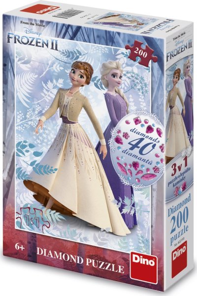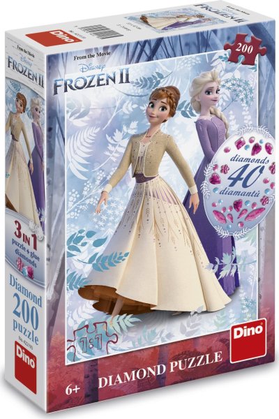 Puzzle obsahuje 200 dílků, 40 kamínků a lepidlo, Ledové království II/Frozen II Rozměr sestaveného: 33 x 47 cm Rozměr krabice: 20 x 29,5 x 6,5 cm Vhodné od 6 let