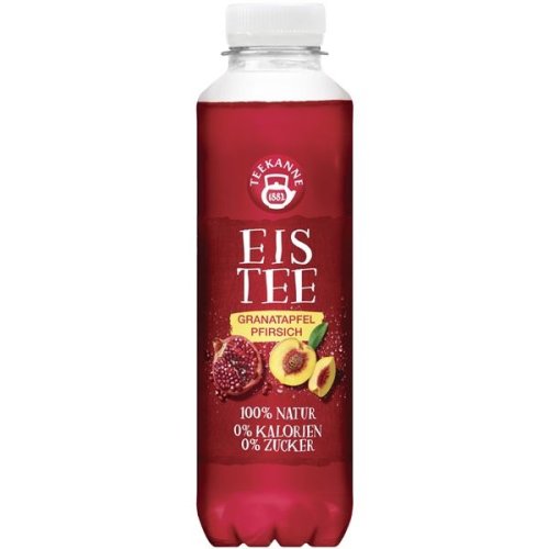 Ledový čaj Teekanne - ovocno-bylinný čajový nápoj s příchutí granátového jablka a broskve Objem: 0,5 l Balení obsahuje 6 ks PET lahví po 0,5 l Složení: výluh z ovocno-bylinného čaje (voda, ibišek, jablko, …
