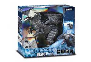 Ledový drak dýmící s efekty RC na dálkové ovládání. Rozměry 56x21x30 cm. Infračervený port. Světelné, zvukový a dýmící efekty. 4xAA baterie do draka, 2xAAA do ovladače nejsou součástí. Ovladač - tlačítko chůze, tlačítko dýmící efekty, tlačítko mávání křídly a zvukové efekty (řev), přepínač kanálů A,B,C. Nádržka na vodu na hlavě. Nádobka na vodu součástí. Ocas se jednoduše nasune do těla draka společně s propojovacím kabelem. Používejte podle obrázků na obalu. Provoz 30 min, dosah 8 m.