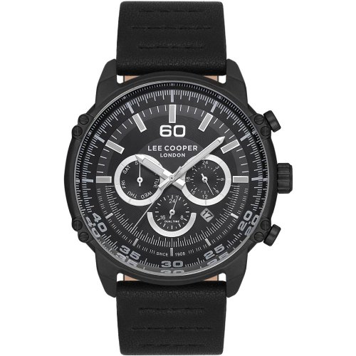 Pánské náramkové hodinky Napájení z baterie Průměr pouzdra 46,0 mm Pouzdro ve tvaru kruhu Kovové pouzdro ČERNÁ barva pouzdra Kožený tah ČERNÉ barva tahu Ručičkový ciferník Černá barva ciferníku Ciferník s dvanácti indexy Materiál skla - minerální sklo Odolné proti vodě při běžném nošení Datum Stopky