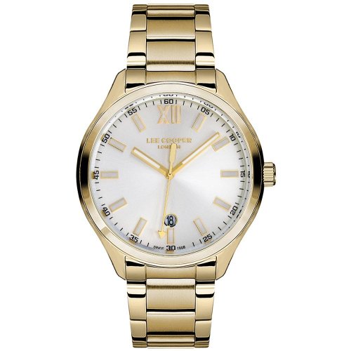Pánské náramkové hodinky Napájení z baterie Průměr pouzdra 41,0 mm Pouzdro ve tvaru kruhu Kovové pouzdro Zlatavá barva pouzdra Ocelový tah Zlatavá barva tahu Ručičkový ciferník Zlatavá barva ciferníku Ciferník s dvanácti indexy Materiál skla - minerální sklo Odolné proti vodě při běžném nošení Datum