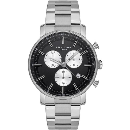 Pánské náramkové hodinky Napájení z baterie Průměr pouzdra 43,0 mm Pouzdro ve tvaru kruhu Kovové pouzdro Stříbrná barva pouzdra Kovový tah Stříbrná barva tahu Ručičkový ciferník Černá barva ciferníku Ciferník s dvanácti indexy Materiál skla - minerální sklo Odolné proti vodě během sprchování a mytí Datum Stopky