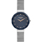 Dámské náramkové hodinky Napájení z baterie Průměr pouzdra 33,0 mm Pouzdro ve tvaru kruhu Kovové pouzdro Stříbrná barva pouzdra Kovový tah Stříbrná barva tahu Ručičkový ciferník TMAVO MODRÁ barva ciferníku Ciferník s dvanácti indexy Materiál skla - minerální sklo Odolné proti vodě při běžném nošení