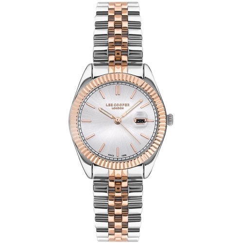 Dámské náramkové hodinky Napájení z baterie Průměr pouzdra 30,0 mm Pouzdro ve tvaru kruhu Kovové pouzdro Stříbrná barva pouzdra Kovový tah Růžové zlato barva tahu Ručičkový ciferník Stříbrná barva ciferníku Ciferník s dvanácti indexy Materiál skla - minerální sklo Odolné proti vodě při běžném nošení Datum