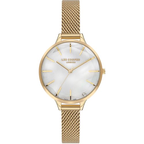 Dámské náramkové hodinky Napájení z baterie Průměr pouzdra 35,0 mm Pouzdro ve tvaru kruhu Kovové pouzdro Zlatavá barva pouzdra Kovový tah Zlatavá barva tahu Ručičkový ciferník Bílá barva ciferníku Ciferník s dvanácti indexy Materiál skla - minerální sklo Odolné proti vodě při běžném nošení