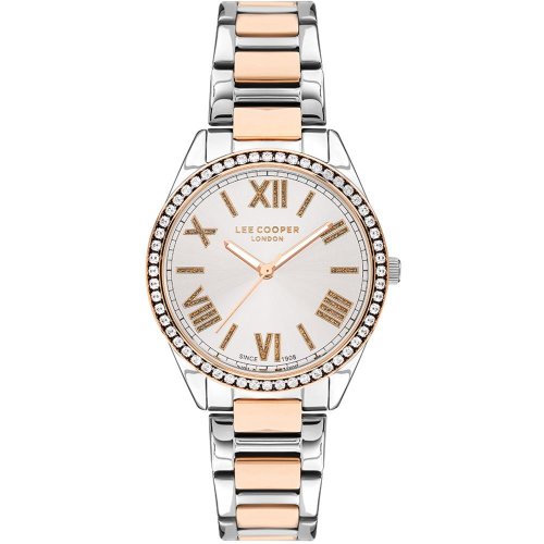 Dámské náramkové hodinky Napájení z baterie Průměr pouzdra 36,0 mm Pouzdro ve tvaru kruhu Kovové pouzdro Stříbrná barva pouzdra Kovový tah Růžové zlato barva tahu Ručičkový ciferník Stříbrná barva ciferníku Ciferník s dvanácti indexy Materiál skla - minerální sklo Odolné proti vodě při běžném nošení