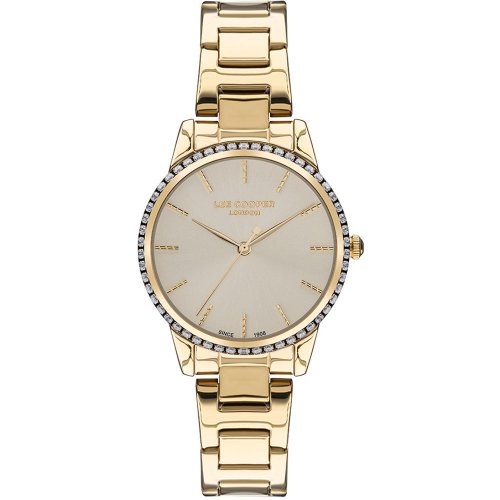 Dámské náramkové hodinky Napájení z baterie Průměr pouzdra 33,0 mm Pouzdro ve tvaru kruhu Kovové pouzdro Zlatavá barva pouzdra Kovový tah Zlatavá barva tahu Ručičkový ciferník Zlatavá barva ciferníku Ciferník s dvanácti indexy Materiál skla - minerální sklo Odolné proti vodě při běžném nošení