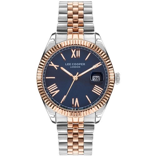 Dámské náramkové hodinky Napájení z baterie Průměr pouzdra 40,0 mm Pouzdro ve tvaru kruhu Kovové pouzdro Stříbrná barva pouzdra Kovový tah Růžové zlato barva tahu Ručičkový ciferník Černá barva ciferníku Ciferník s dvanácti indexy Materiál skla - minerální sklo Odolné proti vodě při běžném nošení Datum