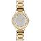 Dámské náramkové hodinky Napájení z baterie Průměr pouzdra 34,0 mm Pouzdro ve tvaru kruhu Kovové pouzdro Zlatavá barva pouzdra Kovový tah Zlatavá barva tahu Ručičkový ciferník Stříbrná barva ciferníku Ciferník s dvanácti indexy Materiál skla - minerální sklo Odolné proti vodě při běžném nošení