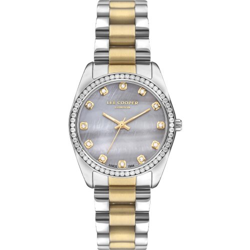 Dámské náramkové hodinky Napájení z baterie Průměr pouzdra 34,0 mm Pouzdro ve tvaru kruhu Kovové pouzdro Stříbrná/zlatá barva pouzdra Kovový tah Stříbrná/zlatá barva tahu Ručičkový ciferník Šedá barva ciferníku Ciferník s dvanácti indexy Materiál skla - minerální sklo Odolné proti vodě při běžném nošení