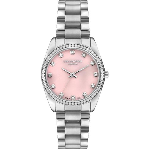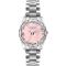 Dámské náramkové hodinky Napájení z baterie Průměr pouzdra 34,0 mm Pouzdro ve tvaru kruhu Kovové pouzdro Stříbrná barva pouzdra Kovový tah Stříbrná barva tahu Ručičkový ciferník Růžová barva ciferníku Ciferník s dvanácti indexy Materiál skla - minerální sklo Odolné proti vodě při běžném nošení