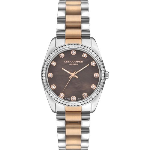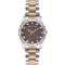 Dámské náramkové hodinky Napájení z baterie Průměr pouzdra 34,0 mm Pouzdro ve tvaru kruhu Kovové pouzdro Stříbrná/zlatá barva pouzdra Kovový tah Stříbrná/zlatá barva tahu Ručičkový ciferník Hnědá barva ciferníku Ciferník s dvanácti indexy Materiál skla - minerální sklo Odolné proti vodě při běžném nošení