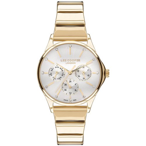 Dámské náramkové hodinky Napájení z baterie Průměr pouzdra 35,0 mm Pouzdro ve tvaru kruhu Kovové pouzdro Zlatavá barva pouzdra Kovový tah Zlatavá barva tahu Ručičkový ciferník Stříbrná barva ciferníku Ciferník s dvanácti indexy Materiál skla - minerální sklo Odolné proti vodě při běžném nošení Datum