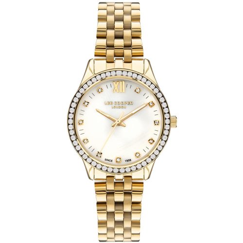 Dámské náramkové hodinky Napájení z baterie Průměr pouzdra 33,0 mm Pouzdro ve tvaru kruhu Kovové pouzdro Zlatavá barva pouzdra Kovový tah Zlatavá barva tahu Ručičkový ciferník PERLEŤOVÁ barva ciferníku Ciferník s dvanácti indexy Materiál skla - minerální sklo Odolné proti vodě při běžném nošení