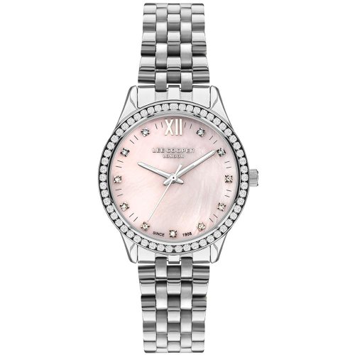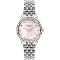 Dámské náramkové hodinky Napájení z baterie Průměr pouzdra 33,0 mm Pouzdro ve tvaru kruhu Kovové pouzdro Stříbrná barva pouzdra Kovový tah Stříbrná barva tahu Ručičkový ciferník Růžová barva ciferníku Ciferník s dvanácti indexy Materiál skla - minerální sklo Odolné proti vodě při běžném nošení