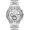 Pánské náramkové hodinky Napájení z baterie Průměr pouzdra 44,0 mm Pouzdro ve tvaru kruhu Kovové pouzdro Stříbrná barva pouzdra Kovový tah Stříbrná barva tahu Ručičkový ciferník Bílá barva ciferníku Ciferník s dvanácti indexy Materiál skla - minerální sklo Odolné proti vodě během sprchování a mytí Datum Stopky