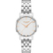 Dámské náramkové hodinky Napájení z baterie Průměr pouzdra 33,0 mm Pouzdro ve tvaru kruhu Kovové pouzdro Stříbrná barva pouzdra Kovový tah Stříbrná barva tahu Ručičkový ciferník PERLEŤOVÁ barva ciferníku Ciferník s dvanácti indexy Materiál skla - minerální sklo Odolné proti vodě při běžném nošení