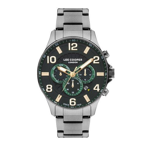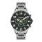 Pánské náramkové hodinky Napájení z baterie Průměr pouzdra 45,0 mm Pouzdro ve tvaru kruhu Kovové pouzdro ČERNÁ barva pouzdra Kovový tah ČERNÉ barva tahu Ručičkový ciferník Zelená barva ciferníku Ciferník s dvanácti indexy Materiál skla - minerální sklo Odolné proti vodě při běžném nošení