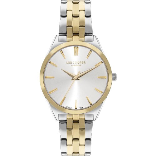 Dámské náramkové hodinky Napájení z baterie Průměr pouzdra 33,0 mm Pouzdro ve tvaru kruhu Kovové pouzdro Stříbrná/zlatá barva pouzdra Kovový tah Stříbrná/zlatá barva tahu Ručičkový ciferník Stříbrná barva ciferníku Ciferník s dvanácti indexy Materiál skla - minerální sklo Odolné proti vodě při běžném nošení