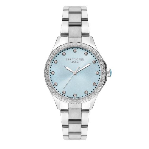 Dámské náramkové hodinky Napájení z baterie Průměr pouzdra 33,0 mm Pouzdro ve tvaru kruhu Kovové pouzdro Stříbrná barva pouzdra Kovový tah Stříbrná barva tahu Ručičkový ciferník SVETLO MODRÁ barva ciferníku Ciferník s dvanácti indexy Materiál skla - minerální sklo Odolné proti vodě při běžném nošení