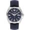 Pánské náramkové hodinky Napájení z baterie Průměr pouzdra 45,0 mm Pouzdro ve tvaru čtverce Kovové pouzdro Stříbrná barva pouzdra Kožený tah TMAVO MODRÁ barva tahu Ručičkový ciferník TMAVO MODRÁ barva ciferníku Ciferník s dvanácti indexy Materiál skla - minerální sklo Odolné proti vodě při běžném nošení