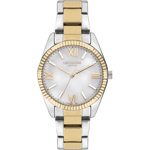 Dámské náramkové hodinky Napájení z baterie Průměr pouzdra 31,0 mm Pouzdro ve tvaru kruhu Kovové pouzdro Stříbrná/zlatá barva pouzdra Kovový tah Stříbrná/zlatá barva tahu Ručičkový ciferník PERLEŤOVÁ barva ciferníku Ciferník s dvanácti indexy Materiál skla - minerální sklo Odolné proti vodě při běžném nošení