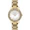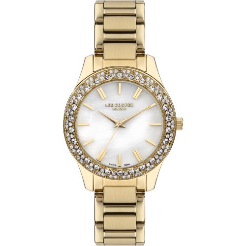 Dámské náramkové hodinky Napájení z baterie Průměr pouzdra 35,0 mm Pouzdro ve tvaru kruhu Kovové pouzdro Zlatavá barva pouzdra Kovový tah Zlatavá barva tahu Ručičkový ciferník PERLEŤOVÁ barva ciferníku Ciferník s dvanácti indexy Materiál skla - minerální sklo Odolné proti vodě při běžném nošení