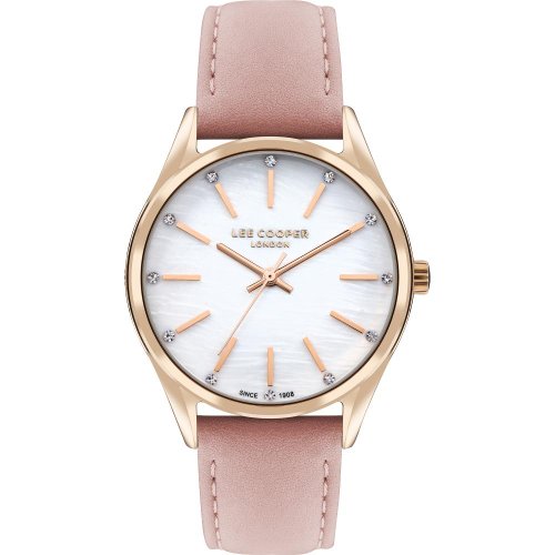 Dámské náramkové hodinky Napájení z baterie Průměr pouzdra 36,0 mm Pouzdro ve tvaru kruhu Kovové pouzdro Růžové zlato barva pouzdra Kožený tah Růžová barva tahu Ručičkový ciferník PERLEŤOVÁ barva ciferníku Ciferník s dvanácti indexy Materiál skla - minerální sklo Odolné proti vodě při běžném nošení