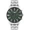 Pánské náramkové hodinky Napájení z baterie Průměr pouzdra 45,0 mm Pouzdro ve tvaru kruhu Kovové pouzdro Stříbrná barva pouzdra Kovový tah Stříbrná barva tahu Ručičkový ciferník Zelená barva ciferníku Ciferník s dvanácti indexy Materiál skla - minerální sklo Odolné proti vodě při běžném nošení