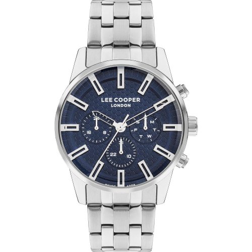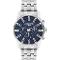 Pánské náramkové hodinky Napájení z baterie Průměr pouzdra 45,0 mm Pouzdro ve tvaru kruhu Kovové pouzdro Stříbrná barva pouzdra Kovový tah Stříbrná barva tahu Ručičkový ciferník TMAVO MODRÁ barva ciferníku Ciferník s dvanácti indexy Materiál skla - minerální sklo Odolné proti vodě při běžném nošení