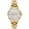 Dámské náramkové hodinky Napájení z baterie Průměr pouzdra 35,0 mm Pouzdro ve tvaru kruhu Kovové pouzdro Zlatavá barva pouzdra Kovový tah Zlatavá barva tahu Ručičkový ciferník Stříbrná barva ciferníku Ciferník s dvanácti indexy Materiál skla - minerální sklo Odolné proti vodě při běžném nošení
