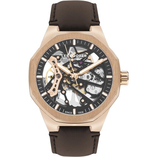 Pánské náramkové hodinky Automatický pohon Průměr pouzdra 43,0 mm Pouzdro ve tvaru osmihranu Kovové pouzdro Růžové zlato barva pouzdra Kožený tah Hnědá barva tahu Ručičkový ciferník Materiál skla - minerální sklo Odolné proti vodě při běžném nošení