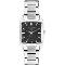 Dámské náramkové hodinky Napájení z baterie Průměr pouzdra 32,0 mm Pouzdro ve tvaru obdelníku Kovové pouzdro Stříbrná barva pouzdra Kovový tah Stříbrná barva tahu Ručičkový ciferník Černá barva ciferníku Ciferník s dvanácti indexy Materiál skla - minerální sklo Odolné proti vodě při běžném nošení