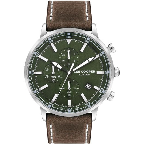 Pánské náramkové hodinky Napájení z baterie Průměr pouzdra 45,0 mm Pouzdro ve tvaru kruhu Kovové pouzdro Stříbrná barva pouzdra Kožený tah Hnědá barva tahu Ručičkový ciferník Černá barva ciferníku Ciferník s dvanácti indexy Materiál skla - minerální sklo Odolné proti vodě při běžném nošení Datum