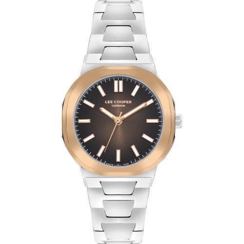 Dámské náramkové hodinky Napájení z baterie Průměr pouzdra 33,0 mm Pouzdro ve tvaru osmihranu Kovové pouzdro Růžové zlato barva pouzdra Kovový tah Stříbrná barva tahu Ručičkový ciferník Hnědá barva ciferníku Ciferník s dvanácti indexy Materiál skla - minerální sklo Odolné proti vodě při běžném nošení
