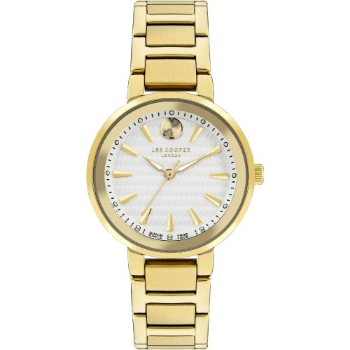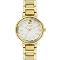 Dámské náramkové hodinky Napájení z baterie Průměr pouzdra 32,0 mm Pouzdro ve tvaru kruhu Kovové pouzdro Zlatavá barva pouzdra Kovový tah Zlatavá barva tahu Ručičkový ciferník Bílá barva ciferníku Ciferník s dvanácti indexy Materiál skla - minerální sklo Odolné proti vodě při běžném nošení