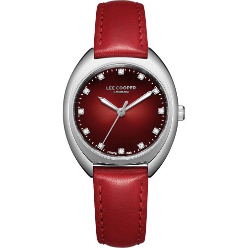 Dámské náramkové hodinky Napájení z baterie Průměr pouzdra 30,0 mm Pouzdro ve tvaru oválu Kovové pouzdro Stříbrná barva pouzdra Kožený tah Červená barva tahu Ručičkový ciferník Červená barva ciferníku Ciferník s dvanácti indexy Materiál skla - minerální sklo Odolné proti vodě při běžném nošení