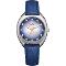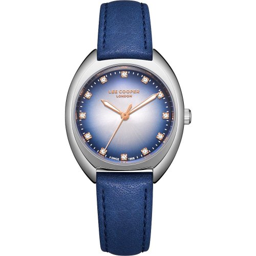 Dámské náramkové hodinky Napájení z baterie Průměr pouzdra 30,0 mm Pouzdro ve tvaru oválu Kovové pouzdro Stříbrná barva pouzdra Kožený tah Modrá barva tahu Ručičkový ciferník Modrá barva ciferníku Ciferník s dvanácti indexy Materiál skla - minerální sklo Odolné proti vodě při běžném nošení