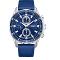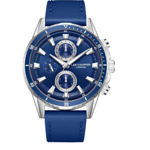 Pánské náramkové hodinky Napájení z baterie Pouzdro ve tvaru kruhu Kovové pouzdro Stříbrná barva pouzdra Kožený tah TMAVO MODRÁ barva tahu Ručičkový ciferník TMAVO MODRÁ barva ciferníku Materiál skla - minerální sklo Odolné proti vodě při běžném nošení