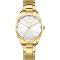 Dámské náramkové hodinky Napájení z baterie Průměr pouzdra 21,0 mm Pouzdro ve tvaru kruhu Kovové pouzdro Zlatavá barva pouzdra Kovový tah Zlatavá barva tahu Ručičkový ciferník Stříbrná barva ciferníku Ciferník s dvanácti indexy Materiál skla - minerální sklo Odolné proti vodě při běžném nošení