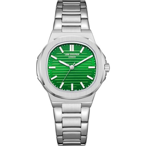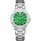 Dámské náramkové hodinky Napájení z baterie Průměr pouzdra 38,0 mm Pouzdro ve tvaru čtverce Kovové pouzdro Stříbrná barva pouzdra Kovový tah Stříbrná barva tahu Ručičkový ciferník Zelená barva ciferníku Ciferník s dvanácti indexy Materiál skla - minerální sklo Odolné proti vodě při běžném nošení