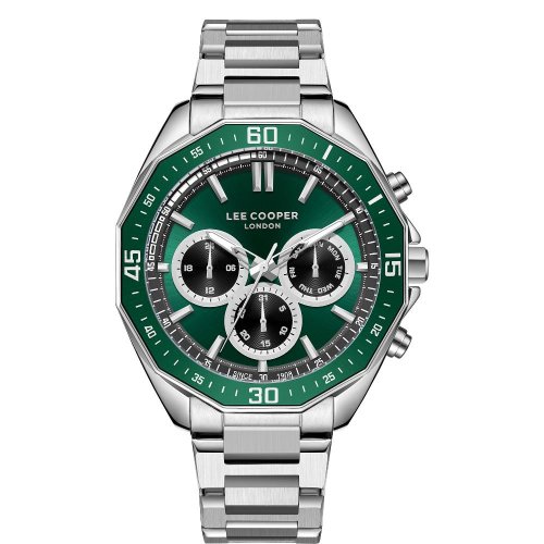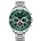 Pánské náramkové hodinky Napájení z baterie Průměr pouzdra 45,0 mm Pouzdro ve tvaru kruhu Kovové pouzdro Stříbrná barva pouzdra Kovový tah Stříbrná barva tahu Ručičkový ciferník Zelená barva ciferníku Ciferník s dvanácti indexy Materiál skla - minerální sklo Odolné proti vodě při běžném nošení